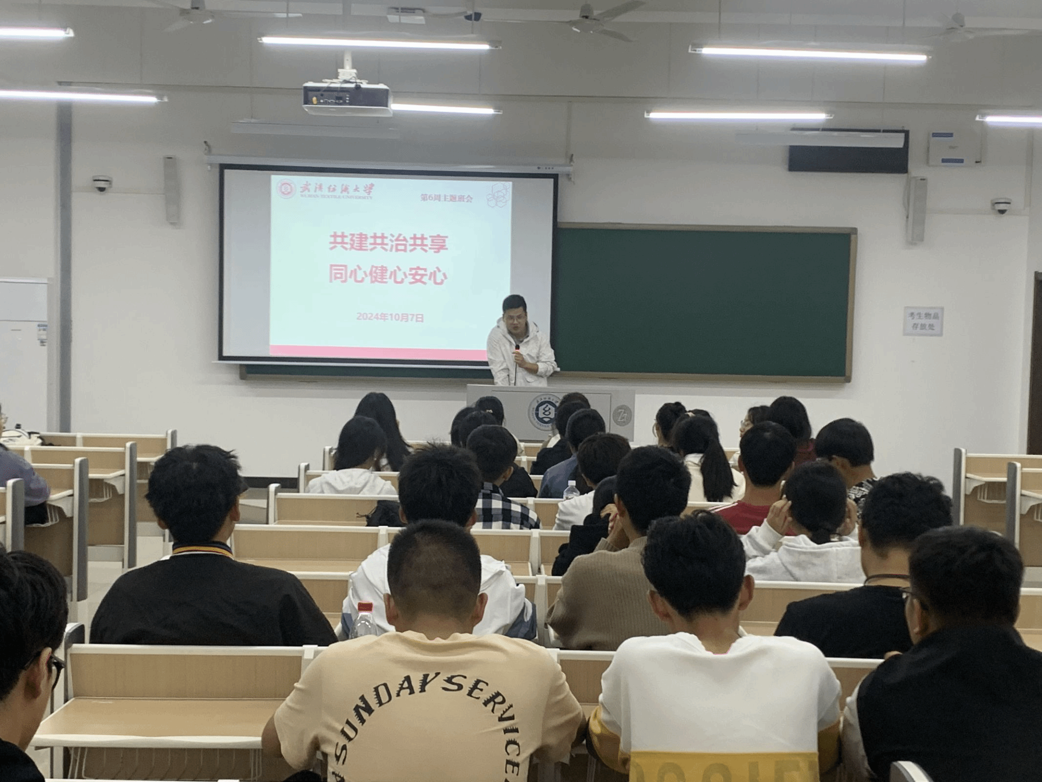 公司于10月7日开展“共建共治共享,同心健心安心”主题班会,本次班会由辅导员和各班班主任主持,全体员工共同参与。