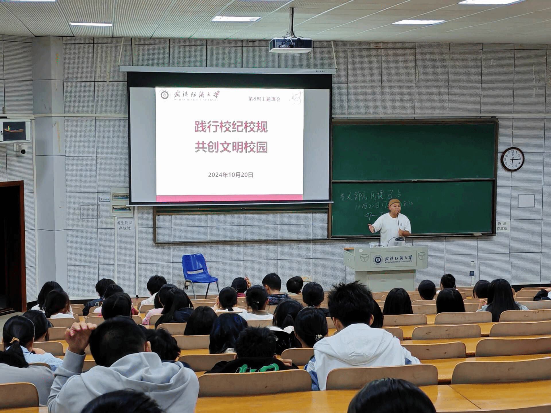 公司于10月20日开展“践行校园校规,共创文明校园”主题班会,本次班会由辅导员朱一雷主持,全体员工共同参与。