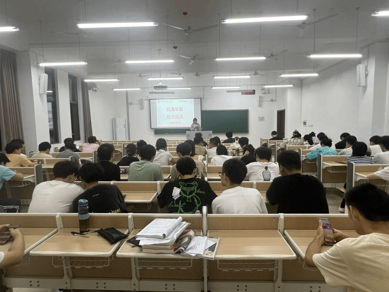 随后,班会围绕“月满华诞 双节同庆”主题开展了爱国主义教育。各班级结合新中国成立76周年,组织开展了主题班会,加强了员工的爱国主义教育,并通过假期安全教育提醒同学们注意假期出行、住宿及个人安全等问题。
