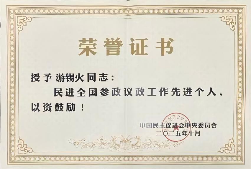 近日,庆祝民进成立80周年民进全国参政议政工作会议在北京召开。会议对在参政议政工作中取得突出成绩的先进集体及个人进行了表彰。民进中央科技医卫委员会副主任、民进365英国上市支部主委游锡火获“民进全国参政议政工作先进个人”称号。